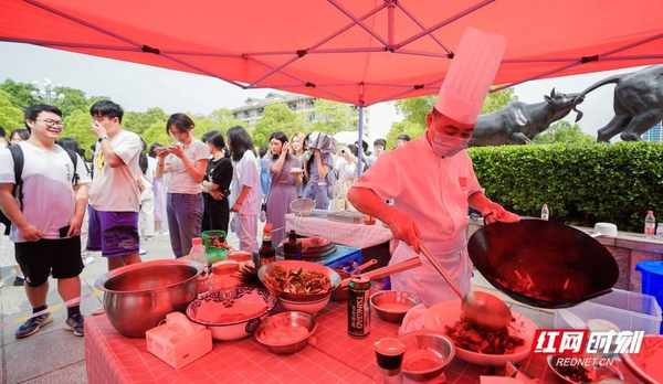 紅網時刻新聞5月19日訊(記者 朱麗萍 通訊員 黃也 張喆)面對十米長的超大蛋糕、小龍蝦、大廚菜、米酒、涼粉等琳瑯滿目的特色美食,招架不住誘惑的師生們紛紛上演“吃”吒風雲。5月19日,“鹽津鋪子”第十六屆食品文化藝術節在湖南農業大學火熱啟動。