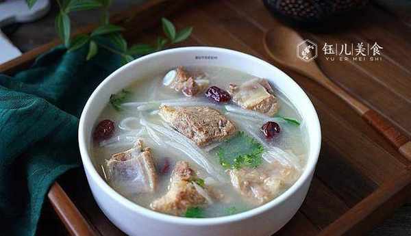 做法:1、排骨溫水洗幹凈,放入鍋中加入3碗冷水,中火煮5分鐘,撈出洗去油沫。2、排骨放入電飯煲中,加滿熱水,放入蔥、生薑、紅棗,按煲粥鍵即可,中途加入鹽、雞精調味。3、煲至排骨可以脫骨,將白蘿卜切細絲,放入電飯煲中,煮3分鐘。4、放入香菜,即可盛出來飲用瞭。
