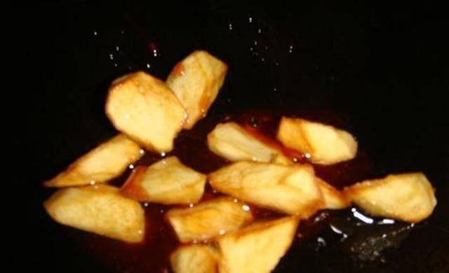 Tips:炒山藥的時候一定要用中火慢炒,不然山藥很容易炸透。另外,炒山藥之前,隻要把筷子放到鍋裡就可以瞭。如果筷子表面出現微小的氣泡,說明油溫已經升到50%到60%熱瞭,可以放果醬瞭。