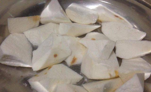 提示:果醬富含淀粉。如果不放入清水中隔絕空氣,山藥表面會發黑,撕破的山藥也會變黑,影響食欲。這是制作山藥美食時要註意的要點。