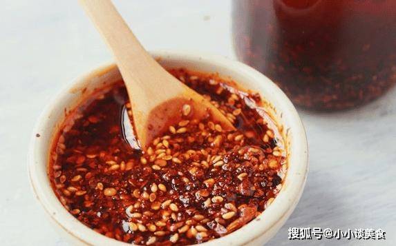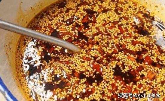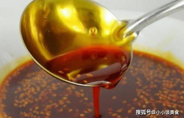 最後,還要把熱油澆在辣椒面和熟芝麻上。不要馬上給。我們應該先加入一些冷油,這樣熱油就不會直接炸辣椒面瞭。倒的時候攪拌。最好分成30%再澆,這樣辣椒油很好吃。它看起來顏色鮮紅,吃起來很香。