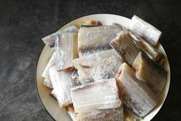 2、將帶魚先剔除內臟,然後清洗幹凈,稍稍晾幹後,切成大小均勻的小段裝盤備用;