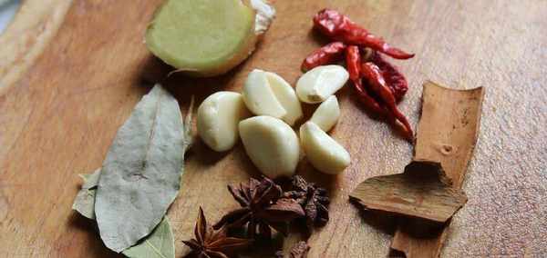 配料:幹辣椒、桂皮、八角、香葉、大蒜頭、生薑