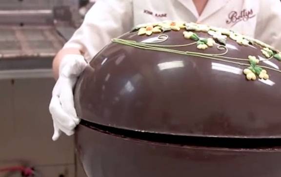 美國當地就有這麼一傢甜品店,每到特定的日子的時候,都是推出一種巧克力出來做紀念,而今天推出來的新品巧克力就是一個巨型的蛋呢。這一傢甜品店裡面的所以巧克力都是人工制作出來的,而且采用的都是一些上等的食材,最後還會給它雕刻上一些精美的紋路呢。