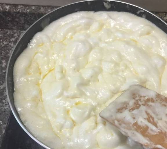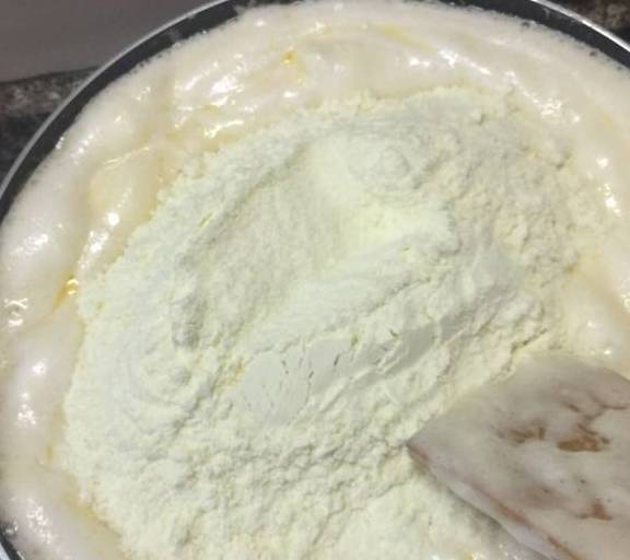 第9步、倒入奶粉,攪拌融化