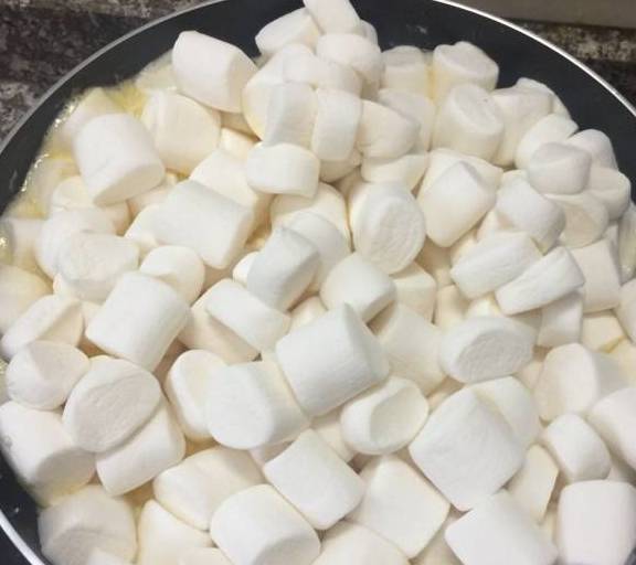 第7步、倒入棉花糖,全程最小火煮化棉花糖