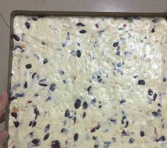 第13步、拌好後倒入烤盤,用搟面杖整平