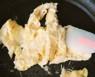 1、榴蓮放到不粘鍋裡炒幹水分,根據自己喜歡的甜度加入適量白糖,放一邊備用
