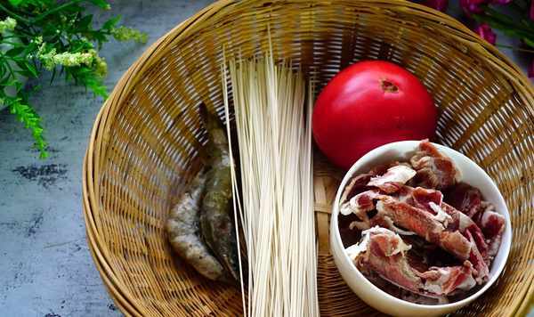 主料:掛面一把,肥牛片半碗,大蝦兩個,西紅柿1個