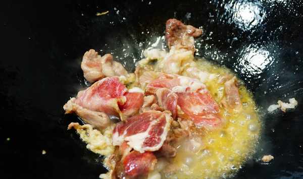 第二步:放入肥牛片、半勺料酒繼續炒制變色後,將肥牛片全部撈出備用。