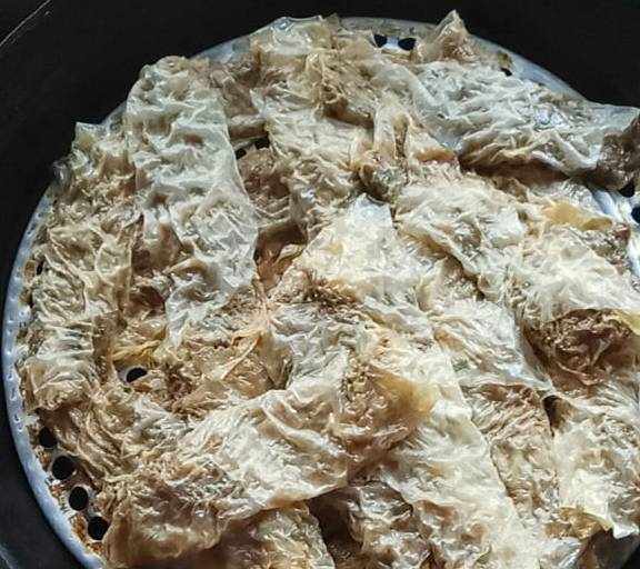 第9步、水開後放鍋裡蒸5分鐘,把鍋蓋拿走晾涼就好瞭。可以放進燉肉或燉菜裡,等菜出鍋前5-10分鐘放,已經是熟的瞭,放太早會燉爛瞭,也可以放盤子裡調好醋汁澆上做涼盤。吃不完凍冰箱裡,很方便。