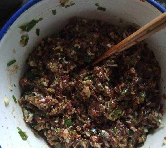 第1步、這是已經調好的肉餡兒,所有調料都放好瞭。