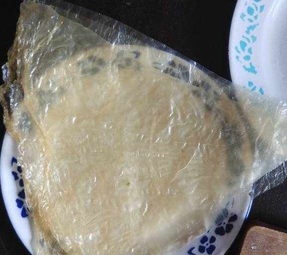 第3步、油皮,其實是圓圓的一大張,我沒展開就拍瞭。