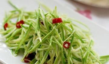 食材:西葫蘆1根,芝麻醬2勺,鹽2克,芥末油少許(可不加),白開水少許