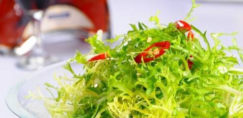 食材:苦菊200克,鹽2克,花生豆適量,蔥末蒜末,生抽,白糖,白芝麻,食用油適量。