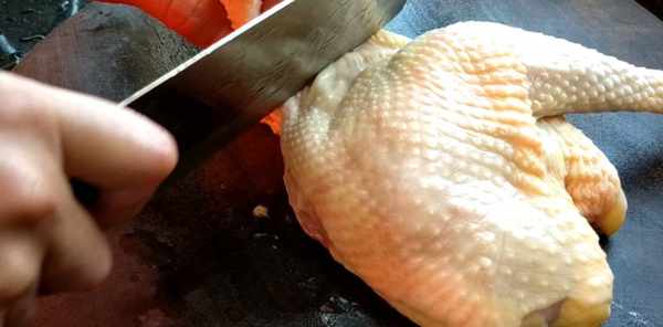 第二步:準備半隻雞,把它斬小塊,雞肉的話最好選農村一些傢養的雞,不僅好吃,也放心點,不用整天擔心激素問題