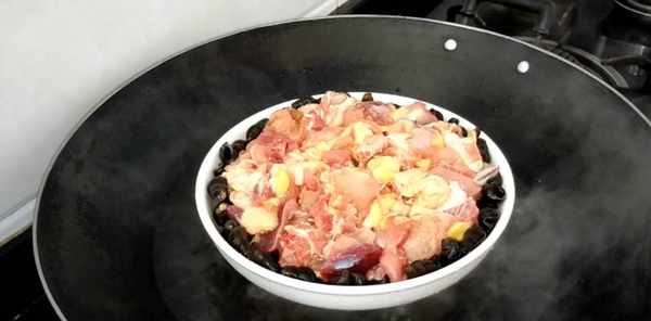 第五步:鍋中燒開水,把雞肉放進去,蓋上鍋蓋,大火蒸25分鐘