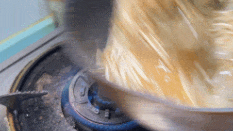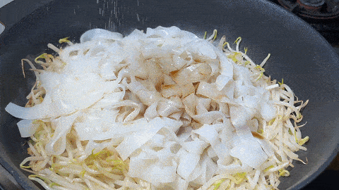 6. 大火進行翻炒,翻炒均勻倒入涼皮