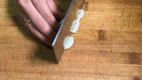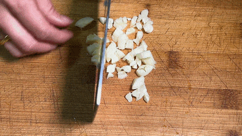 3. 大蒜幾粒用刀拍散,然後剁成蒜末