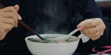涼涼的清早吃上這樣一碗熱氣氤氳的葷素搭配的豬血湯,心裡暖暖的。