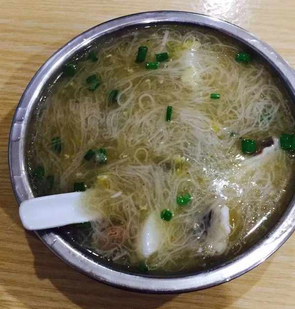 老板做瞭15年,每天四點起來熬湯,七點開賣,下午三點前賣完四百碗粉就收工,反正看著別人