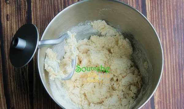 面包基本制作流程:高筋面粉、牛奶、雞蛋、白砂糖、鹽、酵母倒入廚師機,用手動攪拌均勻之後,按廚師機4擋揉15分鐘左右,讓面粉揉到起筋,加入室溫軟化的黃油,繼續揉至一直揉到完全階段。