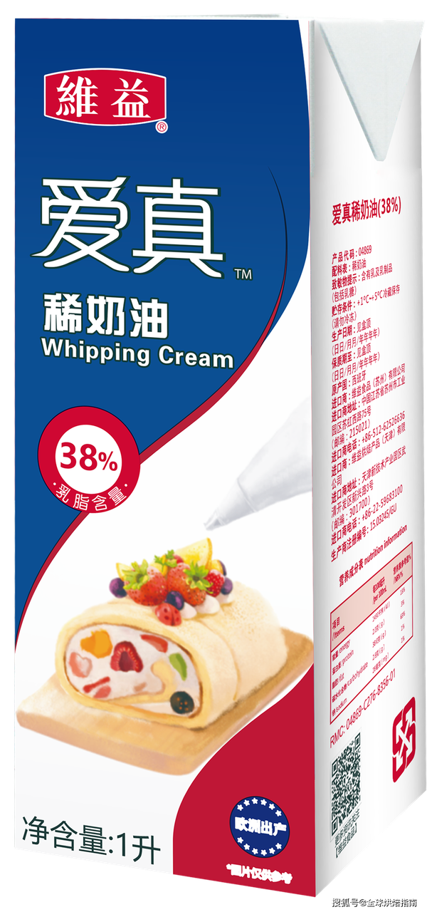 在口感搭配上更是集合了多種流行熱賣元素,將不同口味元素做到完美融合的關鍵:是這款煎蛋盒子蛋糕用的是無添加、擁有高乳脂含量的動物忌廉"維益愛真38%稀奶油 strong>"。由優質純淨的動物忌廉奠定了口味蛋糕的美味品質基礎。