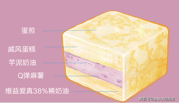 清新的蛋香和乳脂醇香,柔軟又略帶韌性的蛋煎皮,包裹著鬆軟細膩的戚風蛋糕,是香滑的芋泥忌廉,還有Q彈麻薯,是女生都無法拒絕的絕絕子蛋糕。