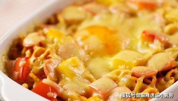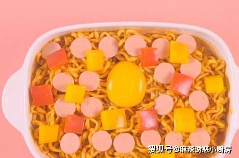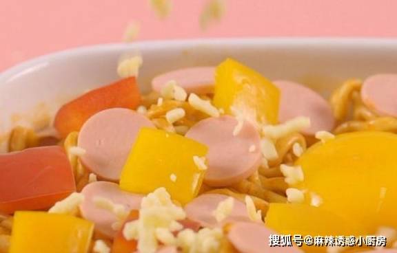 火雞面1包、雞蛋1個、香腸片適量、彩椒塊適量、馬蘇裡拉芝士碎適量