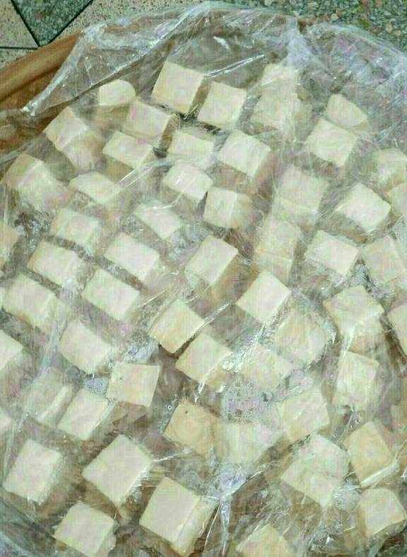 豆腐乳成形(豆腐瀝幹水分2天,凈置7天,等於是9天時間)。