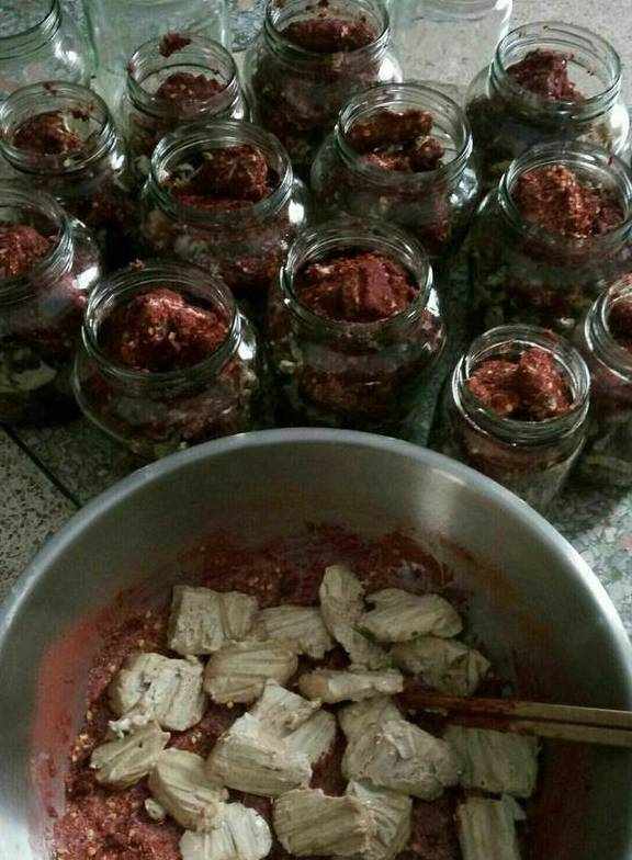配料適量加好瞭,豆腐乳繼續裝瓶。