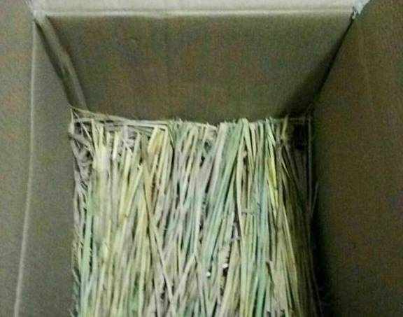 首先,把去掉的稻草尾墊底部,然後再把幹凈的稻草整齊擺放一層。