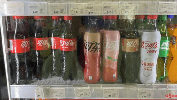 以最常見的500ml塑料瓶裝可口可樂為例,記者走訪發現,在四川省成都市,在連鎖便利店見福,店裡售賣的該規格可口可樂和百事可樂均為3.8元/瓶,收銀員表示漲價從今年開始。在超市,紅旗連鎖和永輝超市的該規格可口可樂售價均為3.5元/瓶,有收銀員表示,也是今年漲到3.5元。在更分散的街邊小店和餐飲店,該規格可口可樂的售價在3元至4元/瓶不等,一位餐飲店老板表示去年就漲價到瞭4元/瓶。