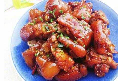 豬蹄和豬皮中含有大量的膠原蛋白質,它在烹調過程中可轉化成明膠。明膠具有網狀空間結構,它能結合許多水,增強細胞生理代謝,有效地改善機體生理功能和皮膚組織細胞的儲水功能,使細胞得到滋潤,保持濕潤狀態,防止皮膚過早褶皺,延緩皮膚的衰老過程。