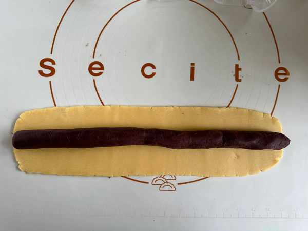 5、面皮包起來,封好接口,最後給他搓均勻,切成下段;