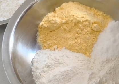 160克玉米面,240克面粉,放上40克白糖.