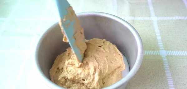 模具墊好油紙,把面糊倒進模具中,蓋上保鮮膜放在溫暖的地方發酵。