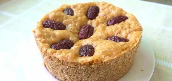把保鮮膜撕掉,把紅棗均勻擺上,隔水大火蒸25分鐘。
