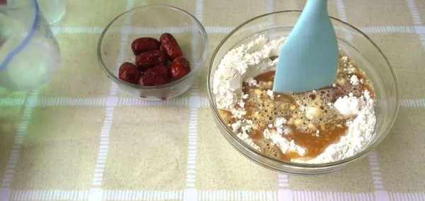 你需要準備的材料有:200克中筋面粉,3克高活性幹酵母,30克紅糖,200毫升溫水,紅棗適量