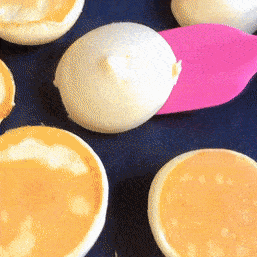 平底鍋刷層薄油,小火預熱兩分鐘擠入面糊,四周淋點水,蓋上蓋子小火燜三四分鐘,然後翻個面,烙至兩面金黃就可以出鍋啦!小tips:為瞭防止小蛋糕出鍋會塌,關火後可以悶一會兒再出鍋。