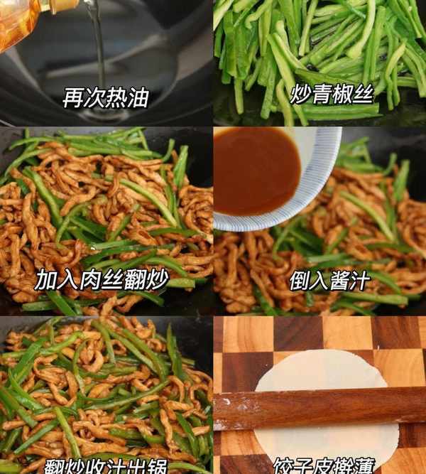 食材:雞胸肉300g、青椒、餃子皮;