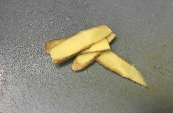 2、將生薑清洗幹凈,切成薄片。