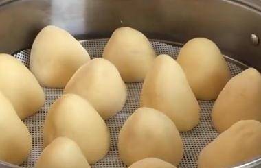 揉好的面,然後從中間切開,先操作一半給他搓一搓,下成均勻大小的面劑,不要太大,現在來捏窩窩頭,下好的面劑,滾成橢圓形,大手指沾點幹面粉,從一頭漫漫慢慢往裡推,隨轉大拇指也在裡面也轉,然後換一個大拇指在捏,也不要捏太大,醒發之後他會長大的,捏好之後讓它醒發半小時,醒發30鐘之後拿下蒸籠,把水燒開,水開後上蒸籠蒸15分鐘時間。