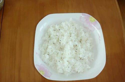 步驟把溫熱米飯盛在大碗裡,放入鹽、白(黑)芝麻、芝麻油,最好用手攪拌均勻,放在一邊晾著備用。