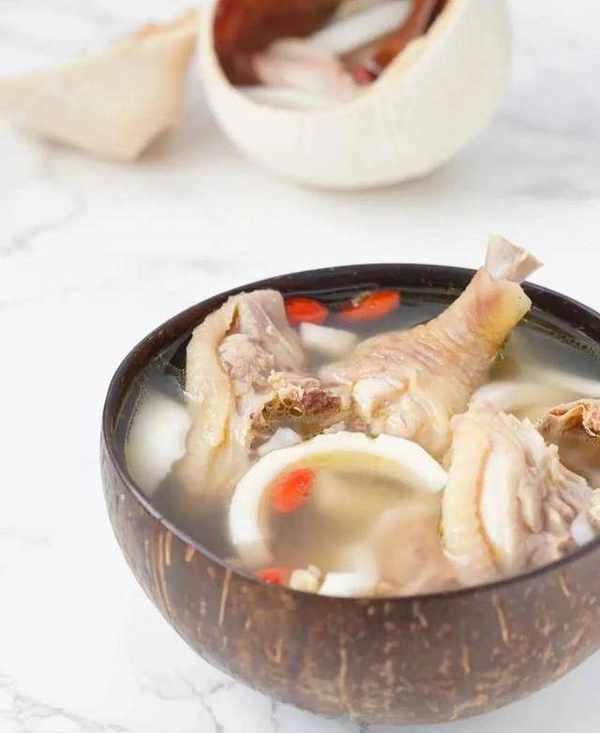 椰子雞湯用椰子和嫩雞燉煮而成,熬出來的湯口味咸鮮,椰味芬芳,湯清爽口,大人小孩都愛吃~