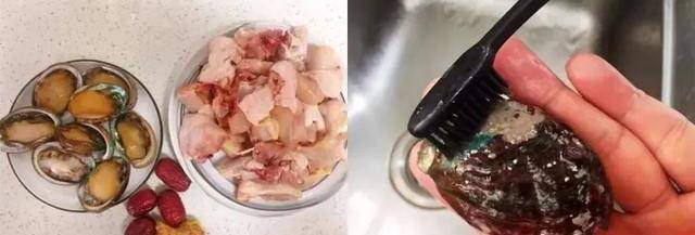 1.雞肉剁小塊備用。鮑魚用鹽水浸泡一會,將鮑魚的殼和肉分開,去掉鮑魚的內臟組織,把鮑魚刷洗幹凈,鮑魚的殼刷幹凈。