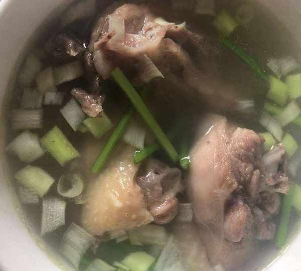 原料:雞、大蔥、香菜、料酒、鹽粉。
