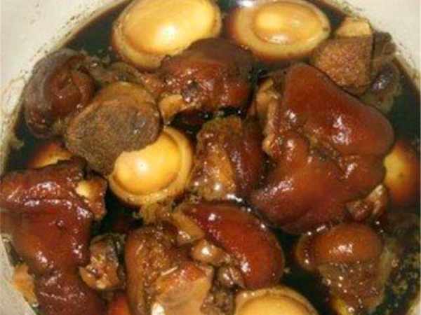 原材料:豬腳、小蔥、生薑片、大蒜、料酒、老抽、茴香、八角、桂皮、香葉、白芷、冰糖、白糖、陳皮、胡椒粉、幹辣椒、芹菜、食鹽、花椒。
