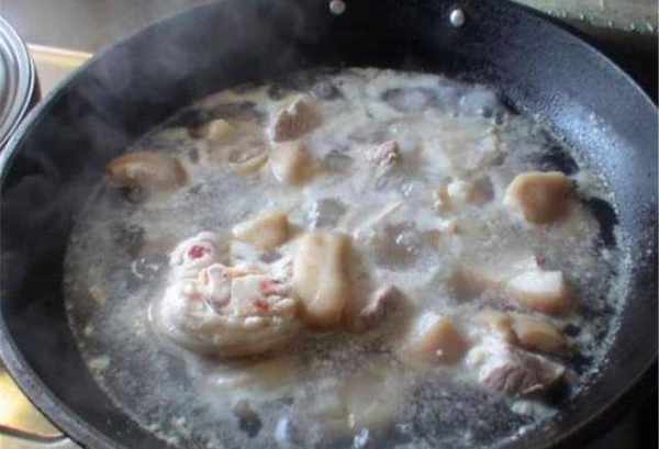 第三步:煮豬腳。等豬腳醃制完成之後,將豬腳放在鍋中,加入適量的涼水,大火煮開,將湯面上的浮沫舀出去,用冰糖炒出糖色之後澆淋在豬腳上,加入一小勺老抽(老抽不能加太多,不然豬腳的顏色會發黑),等豬腳的顏色有變化之後,將豬腳撈出。