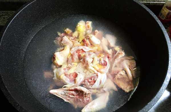 3.雞肉砍小塊,冷水下鍋,放鍋裡焯水,水開後,就可以撈出洗幹凈。